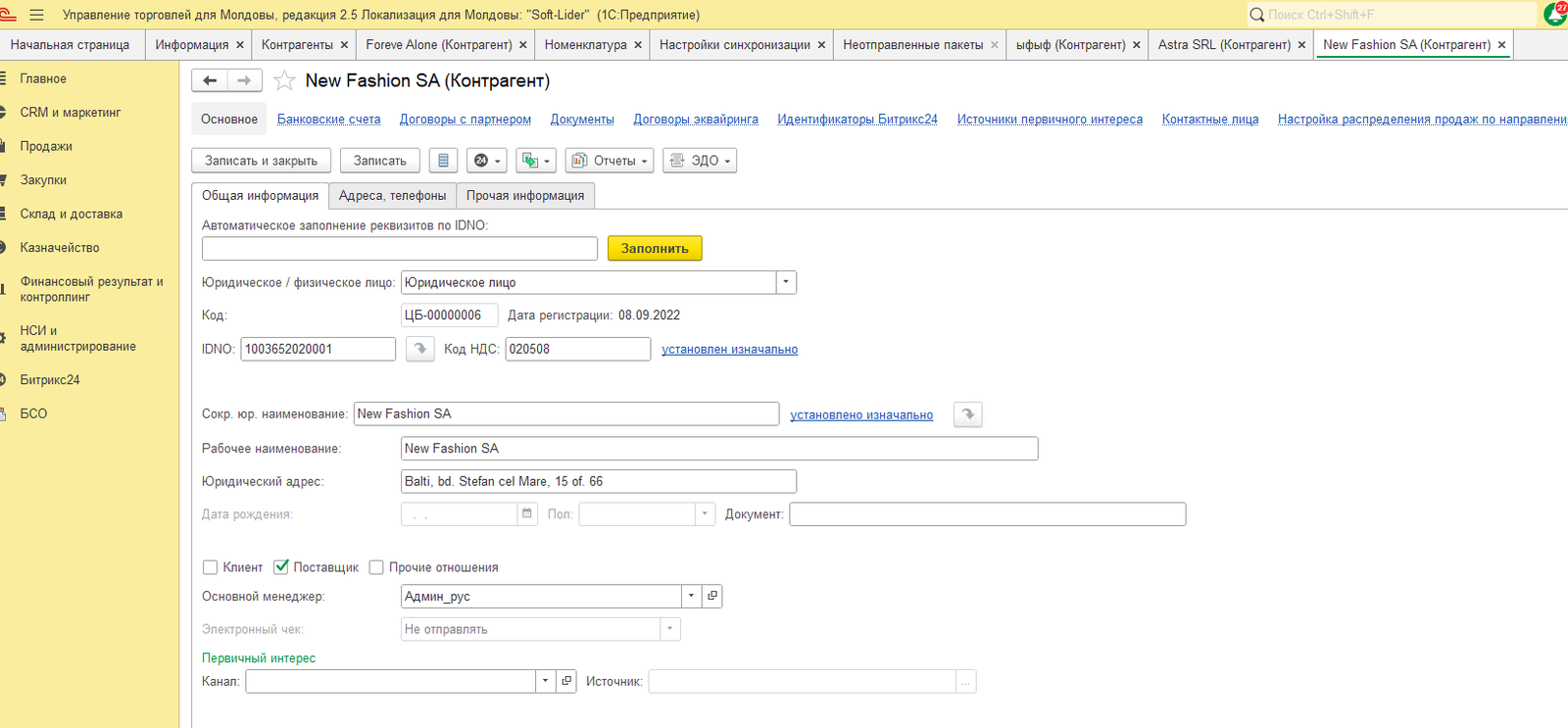 Расширение для Управление торговлей для Молдовы для обмена с Битрикс 24. Контрагентами товарами.